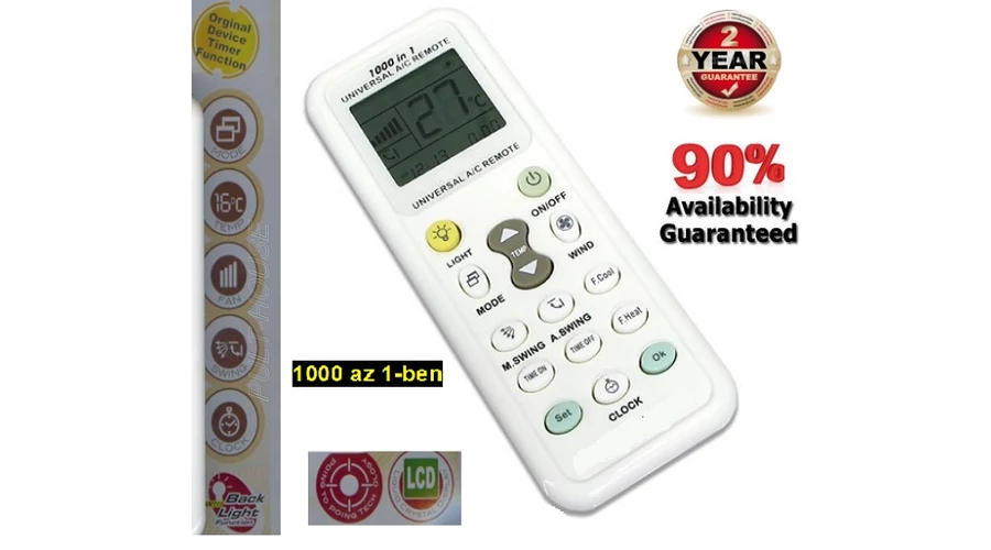 Hatalmas kód tároló kapacitás (vezérelhető kb 1000 különböző világhírű és kevésbé ismert légkondicionálók)