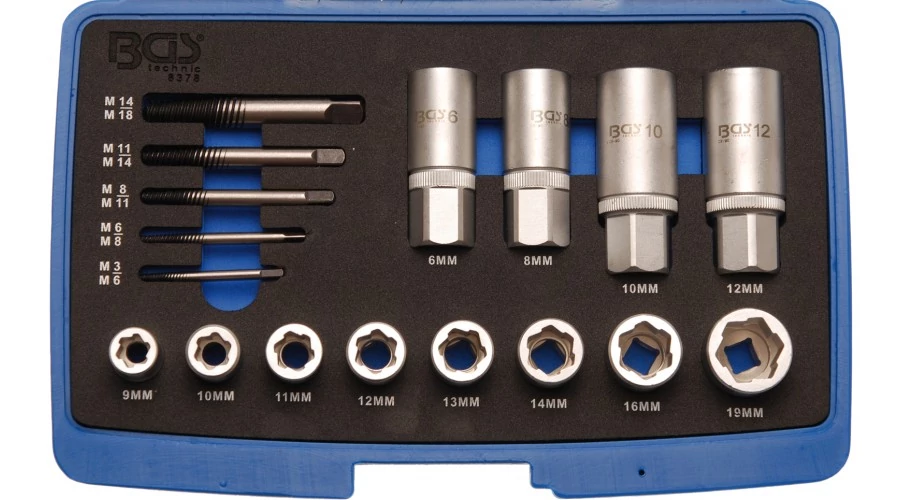 8 speciális cik-cakk dugókulcs a lekerekített hatszögű anyákhoz: 9-10-11-12-13-14-16-19 mm