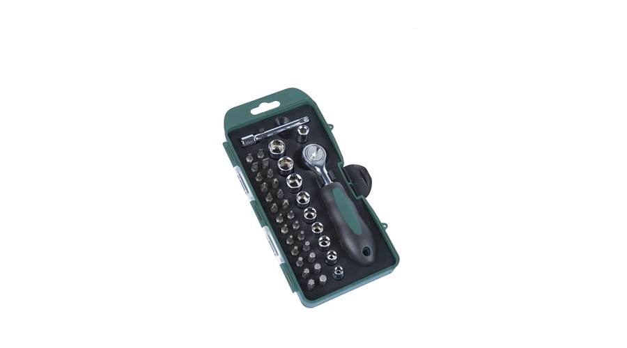 JELLEMZŐK: 10 év garancia TÜV/GS certifikációval. Minőségi termék a 80 éves legendás német MANNESMANN WERKEZEUGE-től, 10 év garanciával. Dugókulcs készlet 1/4" 38 részes Steckschlüsseleinsätze 1/4" - (6,3 mm) Bits 25mm oo Chrom--Vanadium Stahl 3 o 4 o 5 o 6 mm Ph0 o Ph1 o Ph2 o Ph3 Pz0 o Pz1 o Pz2 o Pz3 T10 o T15 o T20 o T25 o T27 o T30 o T40 2 o 2,5 o 3 o 4 o 5 o 5,5 o 6 mm 5 o 6 o 7 o 8 o 9 o 10 o 11 o 12 o 13 mm Bit - adater Verlängerung 75 mm 1 Umschaltknarre (6,3mm) 1/4" mit 2-Komponentenhandgriff, umschaltbarer rechts- linkslauf
