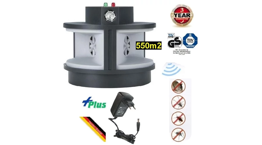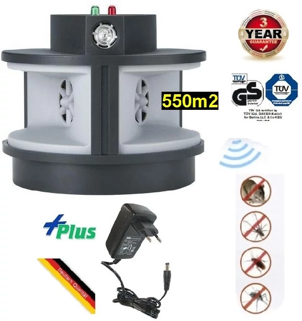 JELLEMZŐK: 3 év garancia 550m2-es 230V-os ultrahangos egérriasztó, patkányriasztó, állatriasztó. Elektromos rágcsálóriasztó és rovarriasztó, dupla piezó hangszórókkal. Az ultrahang modern és tiszta megoldás a kártevők elriasztására, távoltatására. Hogy az állatok az ultrahangra nehogy immunisakká váljanak, a frekvenciáját állandóan változtatja. Tartozák hálózati tápegységről üzemel, egyszerűen bedugjuk a 230V hálózati csatlakozóaljzatba és a dupla piezo hangszórók extrém magas váltakozó hangjeleket adnak 20 - 65KHz között. Gyerekekre és háziállatokra veszélytelen. Alkalmas nagy területen: raktárak, otthonok, bárok, pincék, kamra, padlás, garázs stb. - Széles és folyamatosan változó hangfrekvenciájának köszönhetően hatékonyan taszítja szúnyog, egér, légy, hangya, patkány, csótány, nyest, mosómedve stb - Anyag: ütésálló ABS műanyag ház - Nem mérgező és nincs mellékhatása - Emberre, háziálatra veszélytelen, hangnyomása az ember hallási tartományán kívül esik - Alkalmas kültérre-beltérre ( kültéren nedvességtől védett helyen, víz nem érheti ) Egyéb Használata ultrahang hullámok egy adott frekvenciatartomány ultrahangos hullám támadás azt jelenti, hogy megtámadják az idegrendszer a rágcsálók, amely okozza, kényelmetlenséget, és teszi őket elhagyni a helyét az élet. Ez akkor fordul elő, olyan sebességgel, hogy 2x135dB = 270dB A készülék egy ártalmatlan frekvenciákat bocsát ki, valamint a nem hallható az emberekre és a legtöbb háziállat, például kutyák, macskák, halak, madarak haszonállatok. Ultrahanghullámú nem befolyásolja a működését más eszközök, például a rádió-és televízió-vevőkészülékek, riasztórendszerek, füstérzékelők és a tűz és egyéb elektronikus riasztóberendezések, pacemakerek, hallókészülékek vagy más elektronikus eszközök. Eszköz tulajdonságai: Ultrahanghullámú ATTACK PESTREPELLER kibocsátott ultrahang hullámok a 20,000-65,000 Hz-re. Automatikusan megváltoztatja a frekvenciát a hang frekvenciatartomány fent meghatározott. Rovarriasztó védi a terület akár 550 négyzetméter Alak visszataszító okok "végigsöpör" a védett területen hatékonyabban Dupla hangszórók. Exkluzív kapcsoló DUO TRANS, ULTRA, TEST üzemmód beállítása A váltakozó frekvencia nem teszi immunissá a kátevőket a riasztóval szemben Beépített LED mutatók megerősíteni megfelelő működés Egész nap dolgozik, energiatakarékos MŰSZAKI ADATOK Áramellátás 220-240VAC / 9-12DC Méretek: 120 x 100 x 100 mm Fogyasztás: 1,5 W Frekvencia tartomány: 25,000-65,000 Hz. lesugárzási szög: 260 fok Működési területe: 550 m2 Zajszint: 2x135dB = 270dB A szett tartalma: - Riasztó ( a termék színe eltérhet fehér v. fekete ) - Tápegység