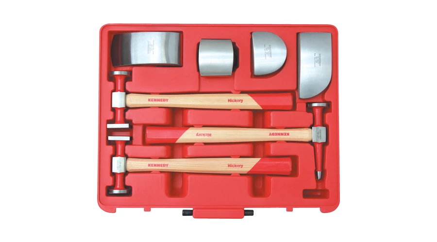 1 x 350 g zsugorító kalapács és lapos kalapács, 1 x 300 g simítókalapács körszelvényű vésőéllel.