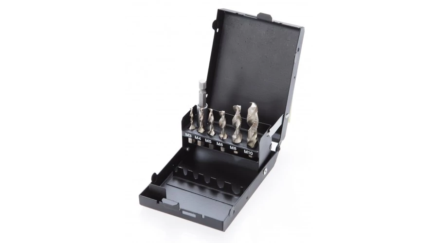 6 kombinált fúró: M3x0,5-M4x0,7-M5x0,8-M6x1,0-M8x1,25-M10x1,5