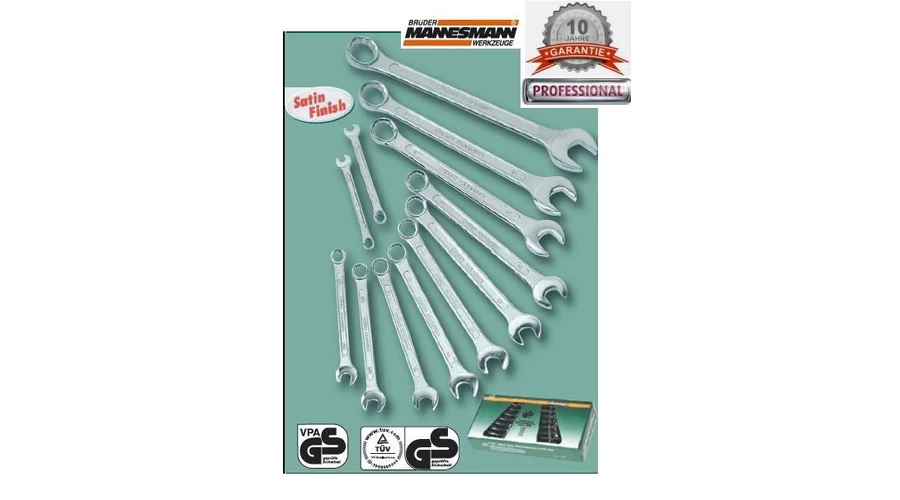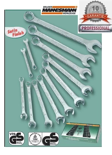 JELLEMZŐK: 10 ÉV GARANCIA TÜV/GS certifikációval Német MANNESMANN DIN3113 CV professzionális 10 év garanciával, polírozott fejjel. GaBel-riNGSchlüSSelSaTz, aus Chrom-Vanadium Stahl, TÜV / GS - geprüft, gemäß DIN 3113 8-teilig, 8 - 19 mm, verchromt polierte Köpfe