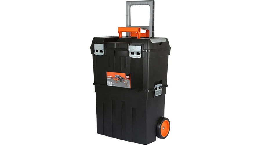 JELLEMZŐK: 10 év garancia A BAHCO útjára indította új szerszámos láda generációját, amely kedvező árával és praktikumával, kielégíti mind a professzionális mind a barkácsolók minden igényét. Praktikus, 2 részre szedhető kerekes szerszámos láda kihúzható foggantyúval. Méretei: 470x290x630 (mm) Igazán prktikus és majdnem elpusztíthatatlan. Egy igazi társ, ha munkáról vagy barkácsolásról van szó. Tiszta polietilénből készül (nem újrahasznosított) – rugalmas és ellenáll az extrém hőmérsékletnek Új forma speciális megerősítésekkel Fogantyúval ellátott kivekető belső rekesz Összekapcsolhatók Strapabíró műanyag foganytú Plusz kihúzható foggantyú 2 komponensű kerekek Fém zárófülek a biztonságos rögzítés érdekében Méret: 470x290x630 (mm) Térfogat: 60 liter Súly: 4 kg