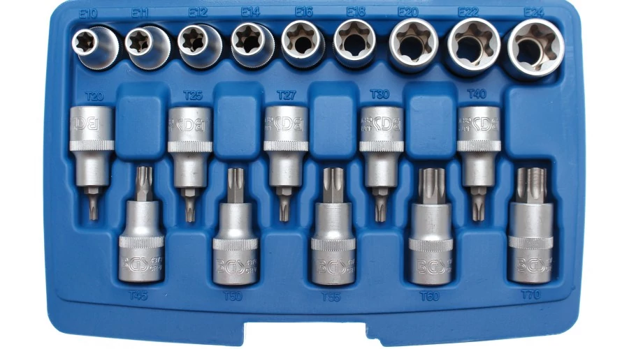 T-torx csavarok számára T20-25-27-30-40-45-50-55-60-70 (nem biztonsági) és az ellentétes E-tipusú csavarokhoz: E10-11-12-14-16-18-20-22-24