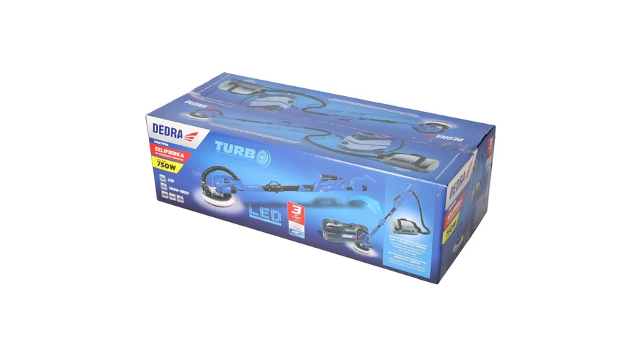 A DED7766 gipszkarton csiszolásához készült. A közvetlenül a tárcsára szerelt motornak köszönhetően a meghajtás fogaskerékkel történik. Ez kiküszöböli a kábelhajtás szükségességét,és hosszú, problémamentes élettartalmat garantál. A DED7766 elektronikus folyamatos sebességszabályozással és külső zsugorítóegységhez csatlakoztatott porelszívó rendszerrel rendelkezik.