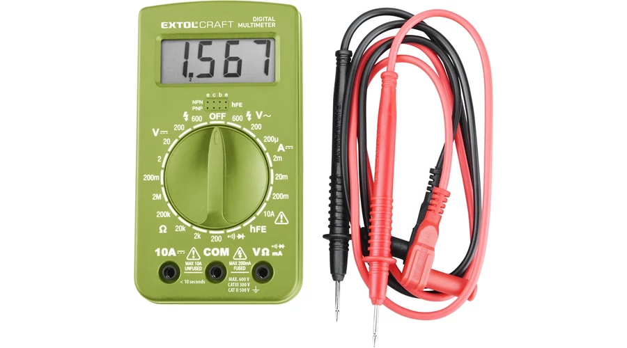 A digitális multiméter egyenáram, egyenfeszültség, váltakozó feszültség, ellenállás mérésre és dióda ellenőrzésre szolgál.