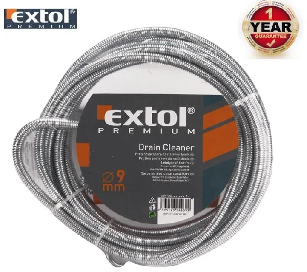 JELLEMZŐK: 1 év garancia Alkalmazás: kis átmérőlyű lefolyócsövekhez, speciálisan a kád/zuhanytálca/mosdó és padlóösszefolyó közötti vezeték tisztítására. Átfér a kád lábszelepének rácsai között, így a bűzelzáró szétszedése nélkül is el lehet végezni a tisztítást. Felszerelve tisztító körömmel és kézi tekerővel Méret: 3m, 9mm átmérő, kézi tekerővel, tisztító körömmel, (1,9mm drótból sodorva)