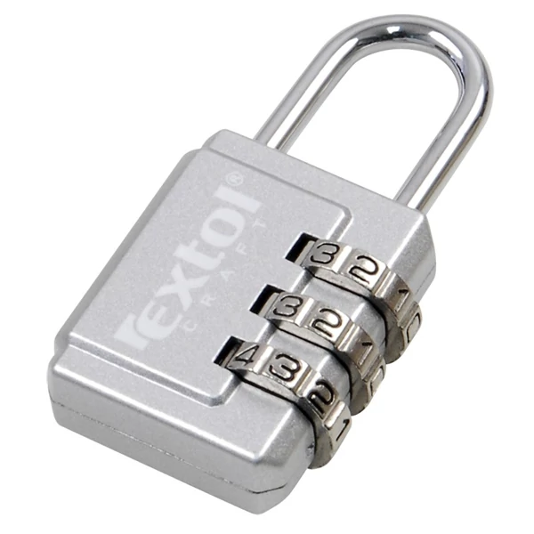 EXTOL bőröndlakat, számzáras, 1000 db kód beállítható, 26×55mm, kengyelátmérő: 3,5 mm (78112)