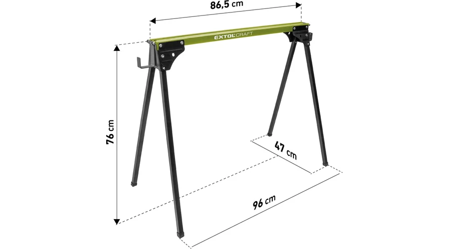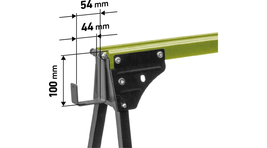 * mindkét végén egy 54/44 mm széles, csuklós oldalsó fogantyú a fagerenda / deszka rögzítéséhez, hogy így munkafelületet/asztalt hozzanak létre