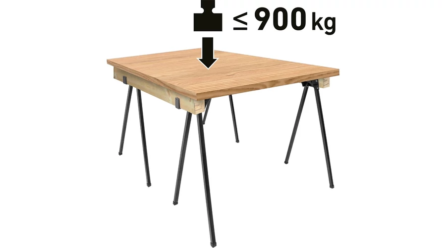 * teljesen fémszerkezetű, akár 450 kg (900 kg párban való használat esetén) teherbírású, összecsukható lábakkal, amelyek a festőbak testében rögzíthetők.
