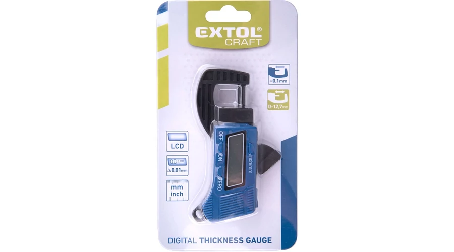 A digitális mikrométer kijelzője 0,01×12,7mm felbontású, pontossága: ±0,1 mm. Az átkapcsoló gombbal lehet váltani a milliméterben és a hüvelykben történő mérés között. Folyadékkristályos kijelző. A mikrométer műanyagból készült. A műanyag tároló védi a mérőeszközt használatkor és tároláskor. Elemtípus: LR44 1,5V