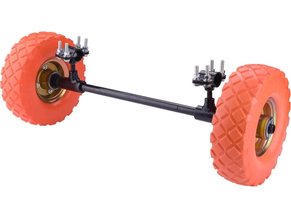 2 db tömör gumi, acél felnire szerelve, fém tengely