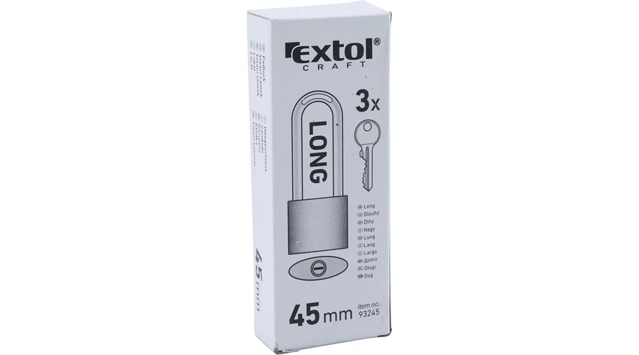 Kiváló minőségű öntöttvasból készült zártest, belső cinkbevonattal a korrózióállóság növelése érdekében. Sárgaréz hengerbetét, kiváló minőségű edzett acélból készült, hosszított kengyel. Kulcs használata nélkül, kattintással zárható. 3 db kulcs, papír doboz.