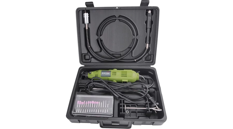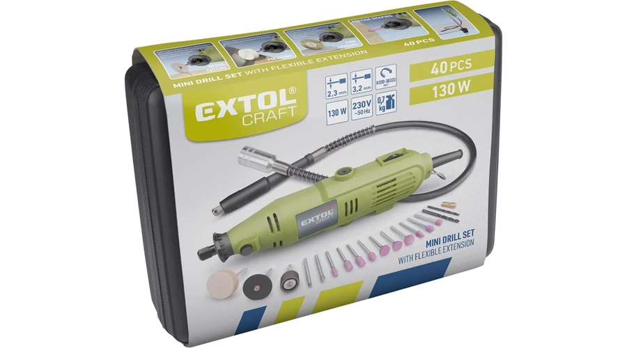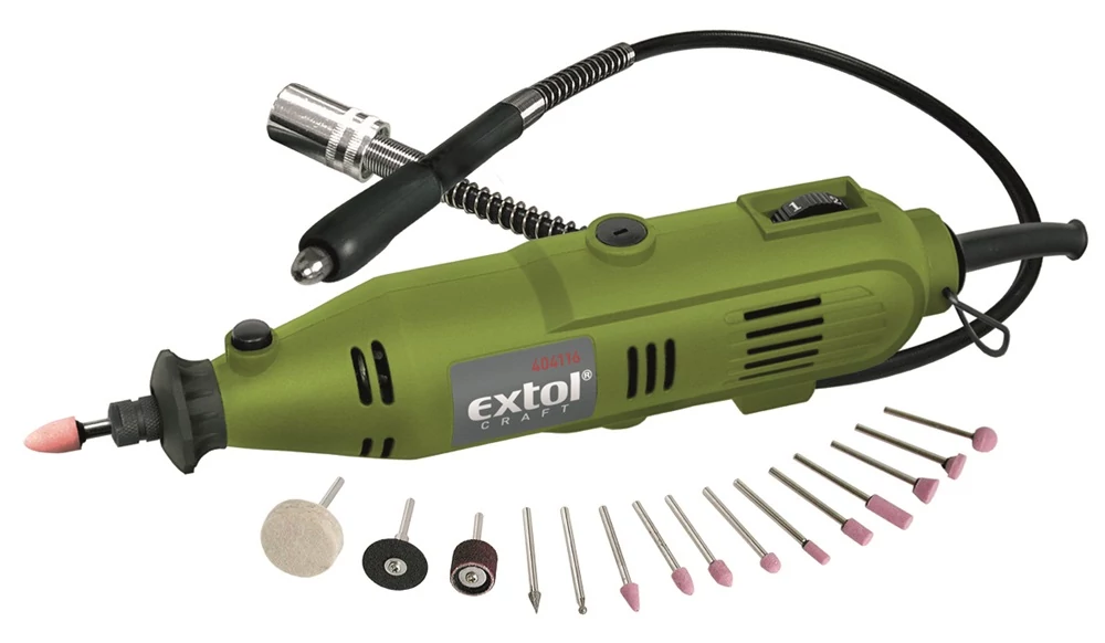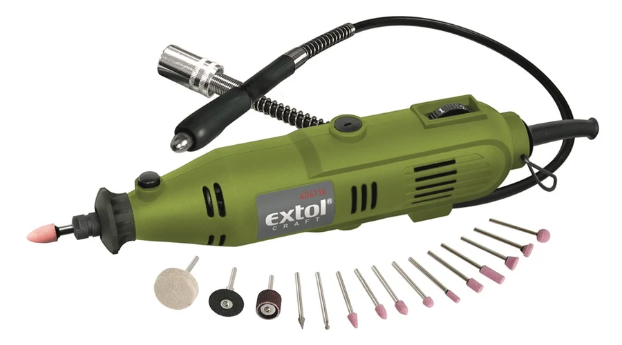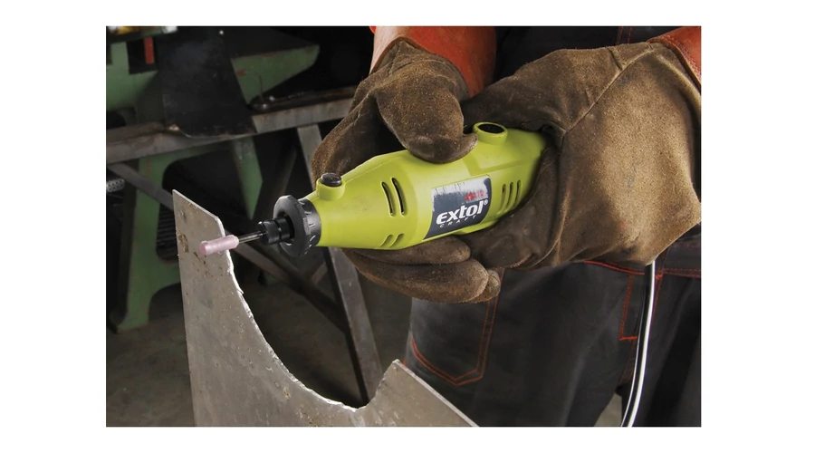 Az EXTOL CRAFT egyenes mini köszörű hobbi jellegű szerszám. Házi barkácsolási munkákhoz használható, fémek, műanyagok, fa és apró anyagok megfelelő megmunkáló toldat segítségével végzett finommegmunkálására.