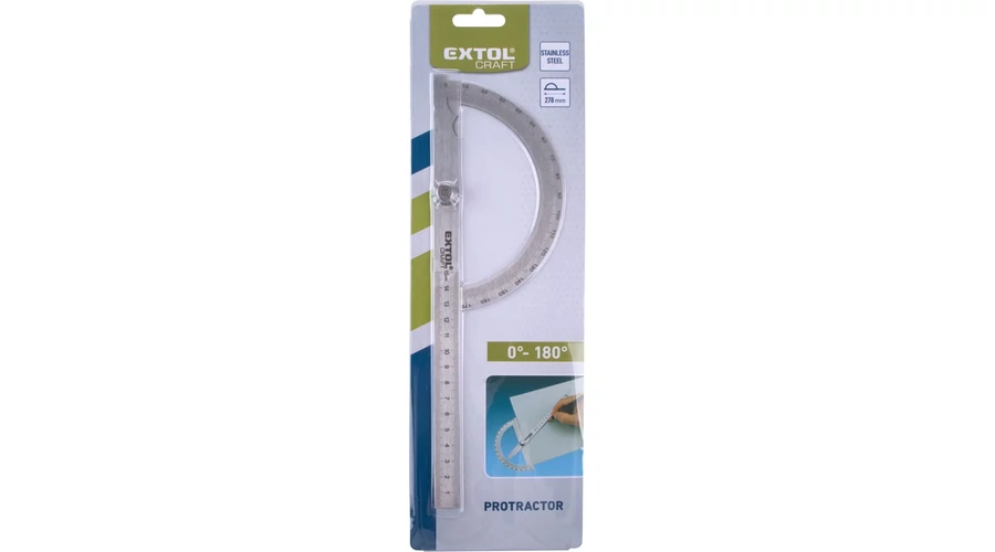 Extol Craft szögmérő/vonalzó, lakatos, hossz.: 278 mm, Inox, mm beosztás, 0° -180°, vastagság: 1,3 mm (925102)