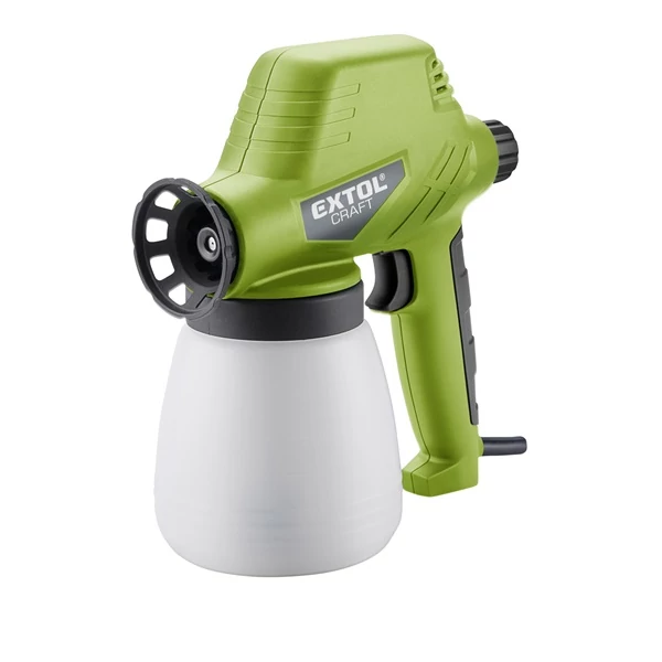Az EXTOL CRAFT elektromos festékszóró pisztoly otthoni, hobby jellegű munkavégzésre szolgáló szerszám, amely elsősorban felületek és tárgyak festékkel történő beszórására, lakkozásra, védőbevonat felhordására és fa impregnálására szolgál. A következő anyagok felhordására használható: plasztik- és latexfesték, vízbázisú festék, alapozó, lakk, olajfesték, zománcfesték, alumínium festék, alvázfesték, fa alapozófesték, fakonzerváló szer, fapác.