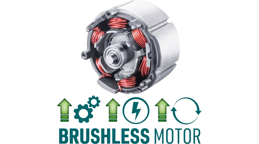 A modern „BRUSHLESS” (szénkefe nélküli) motor biztosítja a nagyobb teljesítmény leadást, miközben kevesebb energiát használ fel mint a szénkefés motor, az akkumulátorral több munka végezhető el, illetve az ilyen motor élettartama is hosszabb.