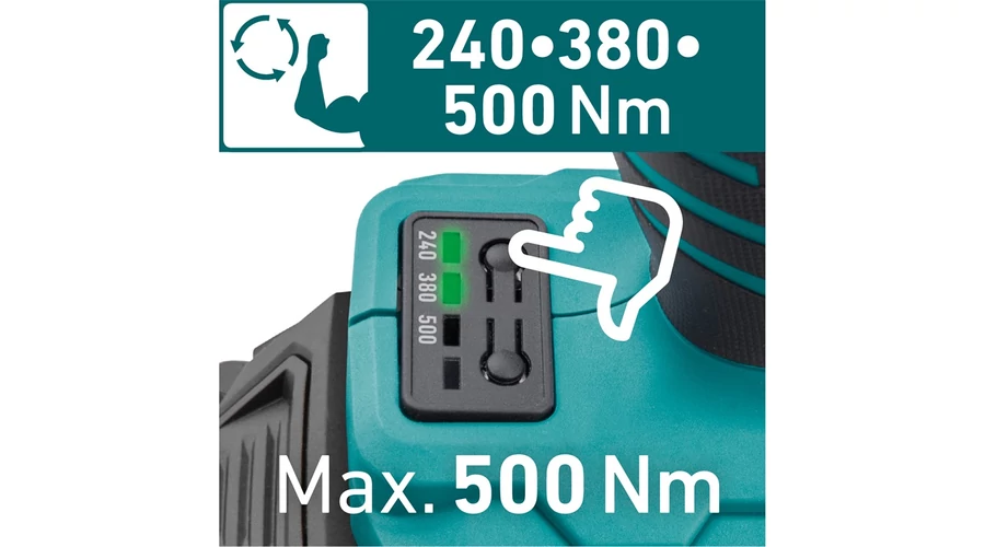 A forgatónyomaték (meghúzási nyomaték) elektronikus beállításával (max. 240/380/500 Nm) a készülék védi a csavarkötéseket (a túl nagy meghúzási nyomaték miatt bekövetkező sérülésektől).
