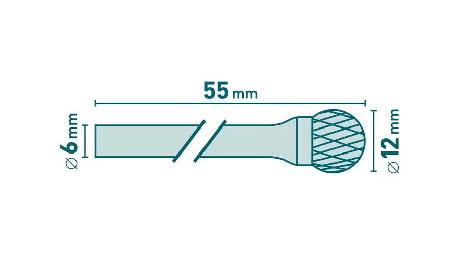 További paraméterek: maró átmérő 12mm, szár átmérő 6mm, teljes hossz 55mm, anyag: volfrámkarbid (vídia), keménység 89-91HRA