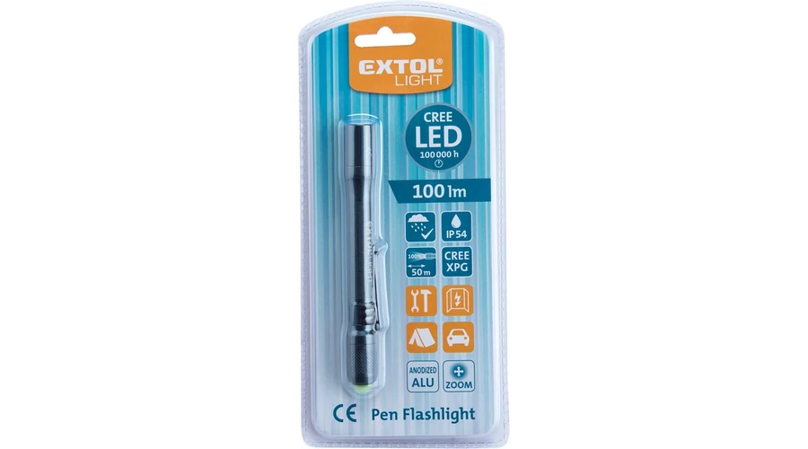 3 funkció: 100% fényerő (100 Lm, kb. 1,5 óra működési idő)