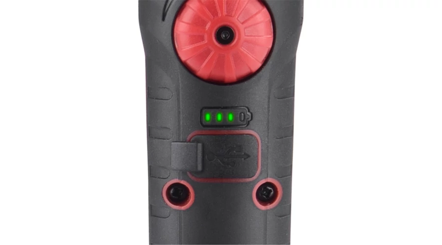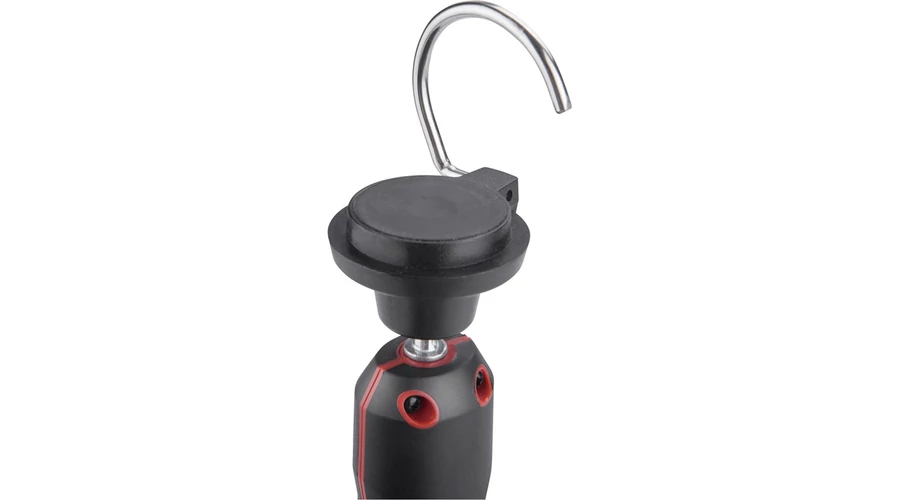 Gumírozott műanyag ház. IP54 tokozás: cseppálló. 1 db kihajtható fém kampó felfüggesztéshez, illetve mágneses talpra is állítható.