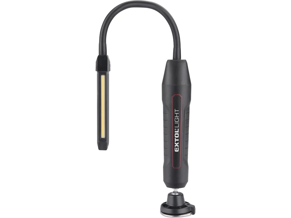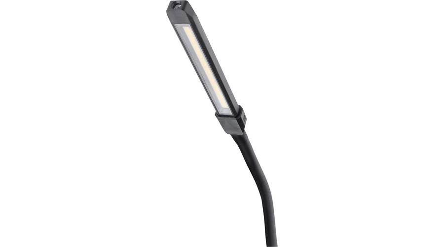 Fényforrások: 5W COB LED + 2W LED, a két fényforrás egymástól függetlenül, külön-külön kapcsolható. A COB LED fokozatmentesen állítható fényerő 10 % - 100 % között. A flexibilis szár 360 fokban körbe forgatható.