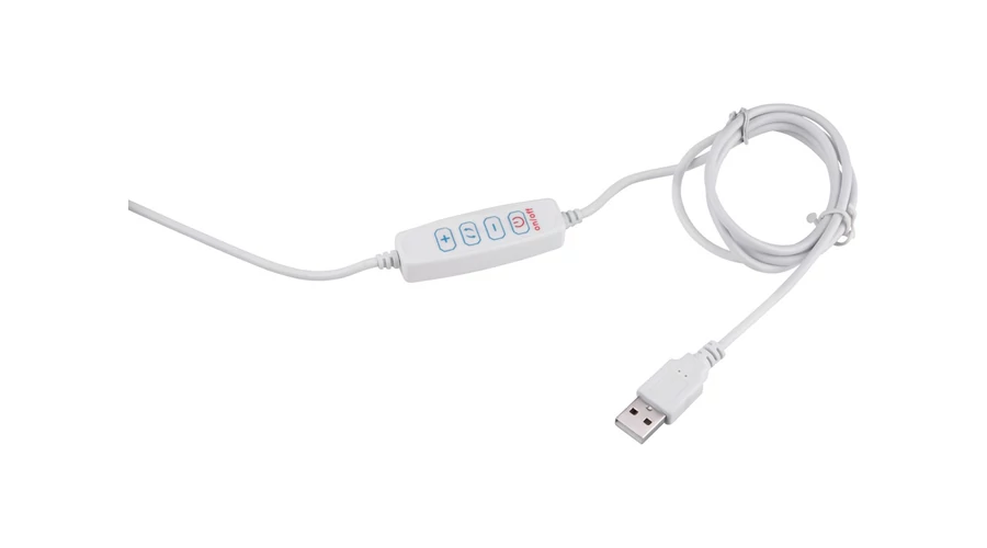 1,5m USB töltőkábel, adapter nélkül! Számítógépről és/vagy powerbank-ból működtethető illetve telefon adapterrel hálózatról is.