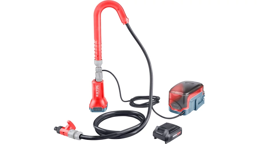 - Az Extol® Premium 8891931 típusú szivattyút akkumulátor és akkumulátortöltő nélkül forgalmazzuk, így kedvező áron vásárolható meg a készülék, ha a vevőnek már van más, tőlünk származó akkus készüléke a SHARE 20 V akkus programból, kompatibilis akkumulátorral és akkumulátortöltővel