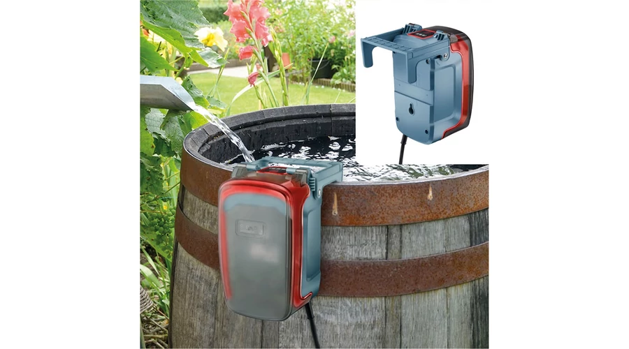 - A szivattyút kampóval lehet a hordó szélére akasztani, a kampóban található tömlővel lehet a szivattyú merülési mélységét beállítani. A kampót a hordó szélére kell akasztani, a kampóban lévő tömlőt pedig ki vagy be lehet húzni.