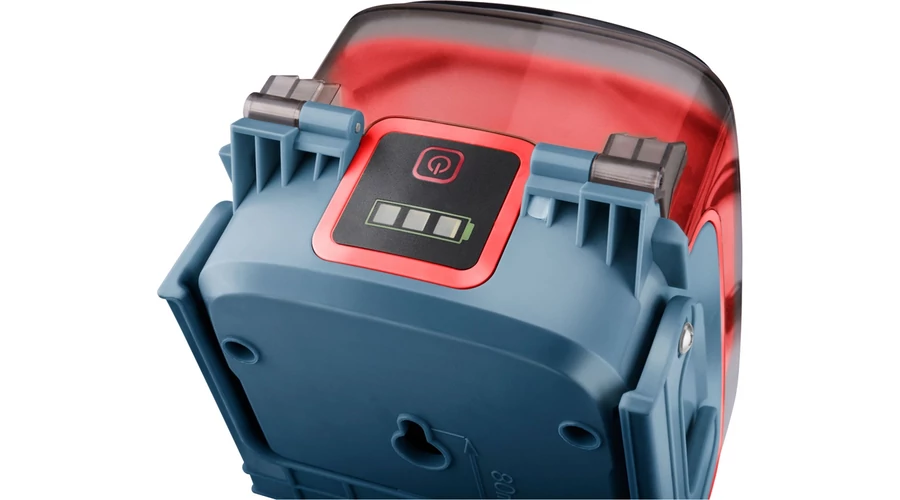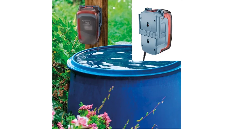 - A hordó szélére akasztható vagy akár falra is felszerelhető akkumulátortartón található működtető panellel lehet a szivattyút be- és kikapcsolni. Az akkumulátortartón található LED-ek mutatják az akkumulátor töltöttségi szintjét.