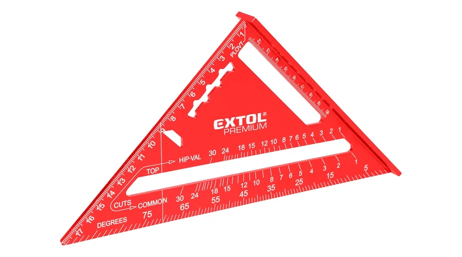 két befogó oldalon mm beosztás, az átfogó oldalon 0-90° ferde beosztás szögméréshez: 5-15-25-35-45-55-65-75°