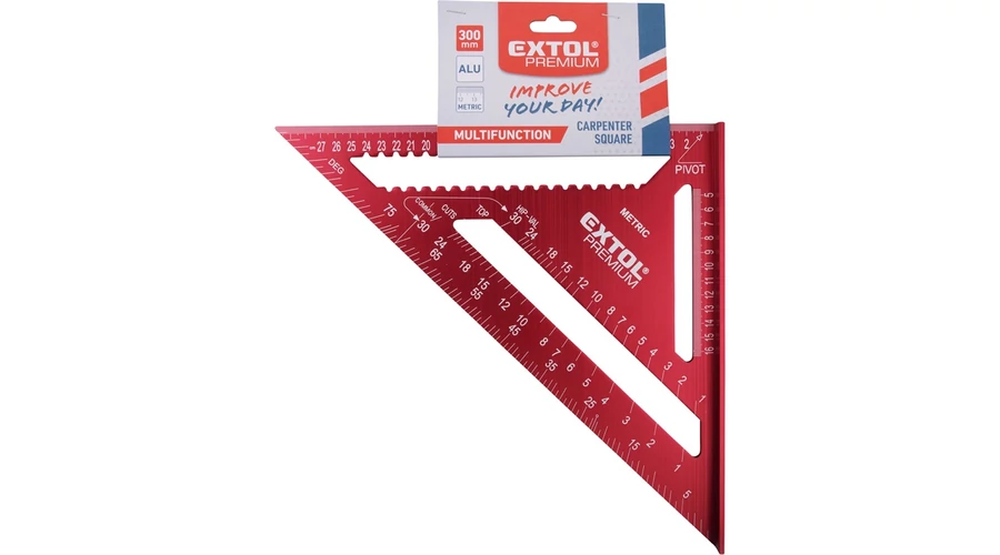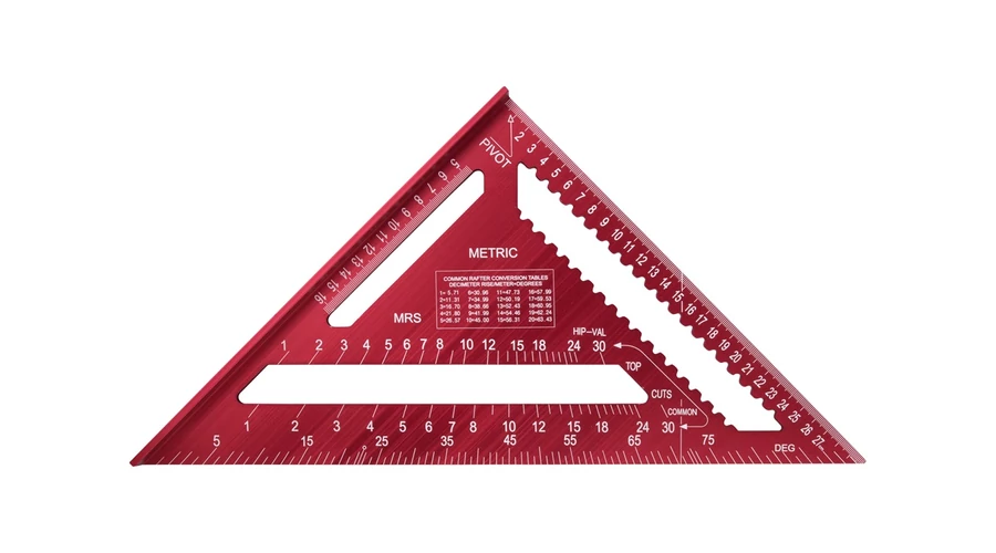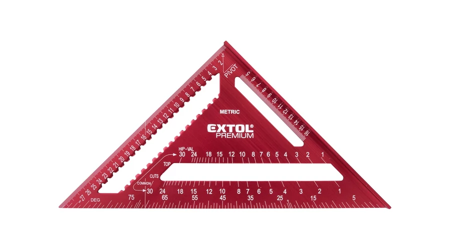 két befogó oldalon mm beosztás, az átfogó oldalon 0-90° ferde beosztás szögméréshez: 5-15-25-35-45-55-65-75°