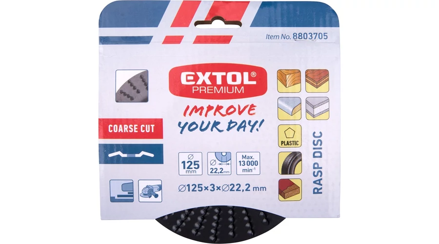125mm-es sarokcsiszolóhoz használható. Puha- és keményfa forgácsolásához, tetőfedőknek, faszobrászoknak, szerszámnyelek megformázásához ajánljuk. Nem égeti a fát. Használat közben nem tömődnek el a lyukak.