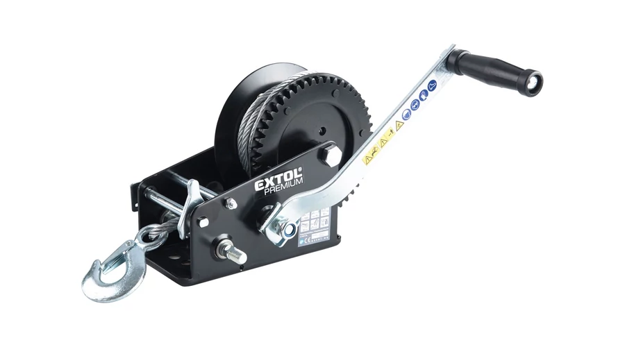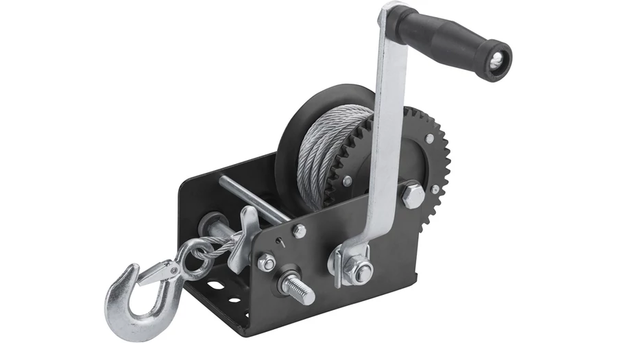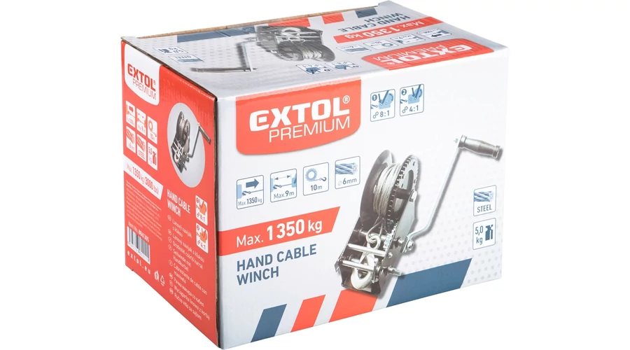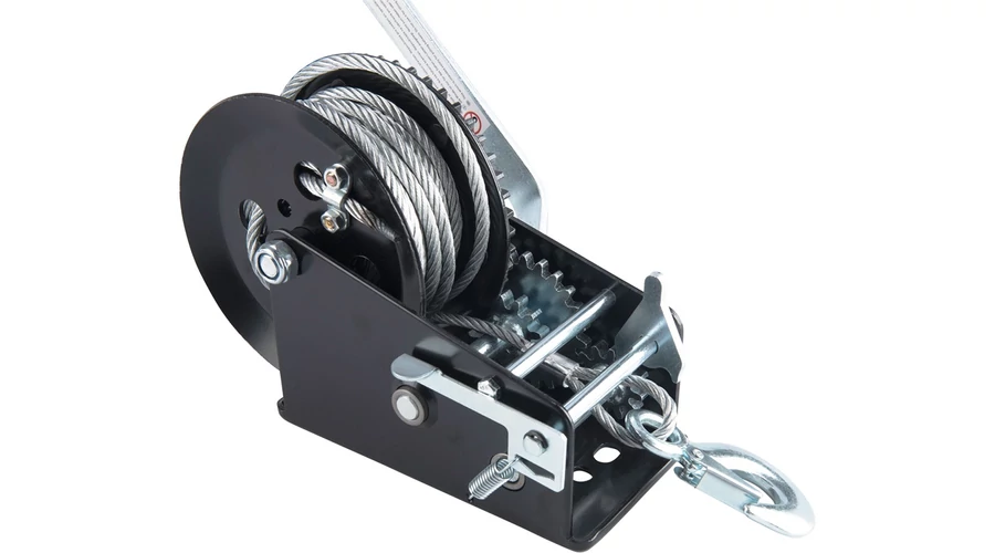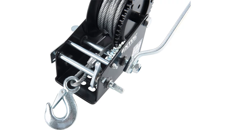 Max. terhelés: 1350kg. 2 sebességes modell, 2 áttételezési aránnyal: 8:1 vagy 4:1. Horoggal és talppal, amely az előre elkészített furatokon keresztül bármilyen pozícióban rögzíthető. Sodrott acél drótkötél 6 mm × 10m (kb. 9 m használható). EK megfelelőségi nyilatkozat a felhasználói kézikönyvben!