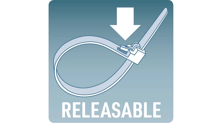 A kábelkötegelő fokozottan ellenáll az UV sugárzásnak továbbá a fej kioldógombbal van ellátva így többször is használható.