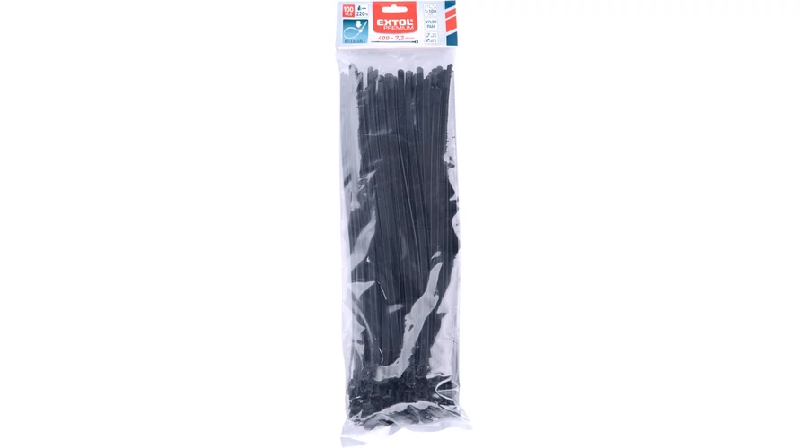 Húzószilárdsága 22kg; sav- és lugálló. Használható: -40°C és +85°C között; anyaga nylon 66; teljesíti az EN 62275 biztonságra és szilárdságra vonatkozó szabványt, tűzvédelmi osztály UL94V-2; kábelek, vezetékek és egyéb, nemcsak villanyszerelési anyagok gyors kötegeléséhez és rögzítéséhez.