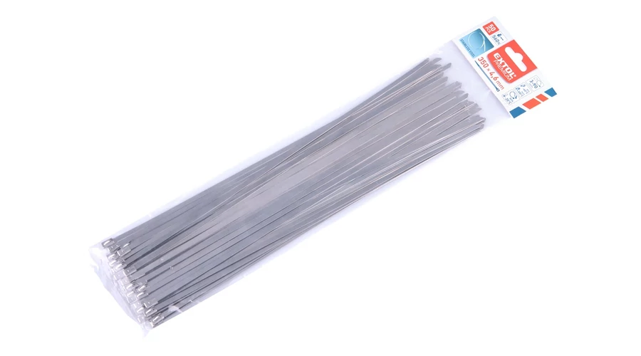 Anyag: nagy szakítószilárdságú, hajlékony és szívós SS304 rozsdamentes acél, nem mágneses. Max. húzószilárdsága: 1140 N. Hőfok tartomány: -60 ºC / + 300 ºC között. Kábelek, vezetékek és egyéb, nemcsak villanyszerelési anyagok gyors kötegeléséhez és rögzítéséhez. Egyszer használatos.