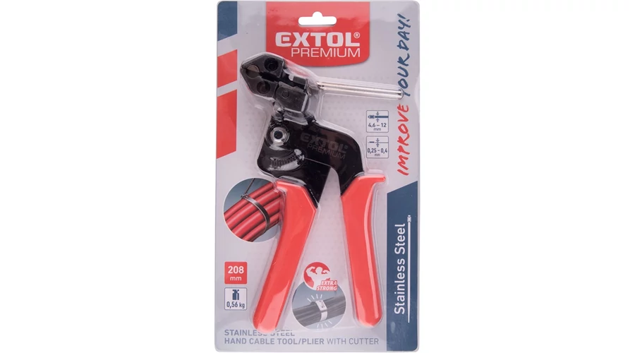 Rozsdamentes acél kábelkötegelők erőteljes meghúzásához, 4,6-12 mm szélességig, illetve 0,25-0,4 mm vastagságig.