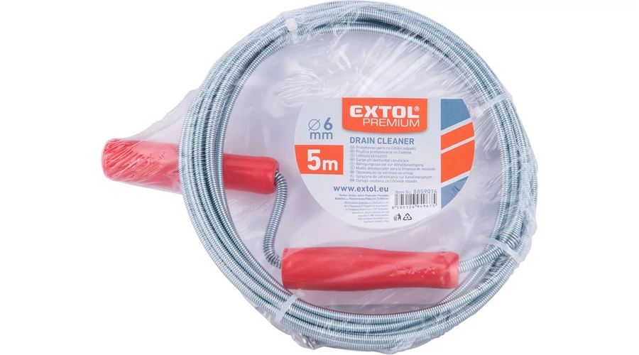 Extol Premium lefolyócső tisztító, 5m, 6mm átmérő, kézi tekerővel, tisztító körömmel, (1,9mm drótból sodorva) (8859014)