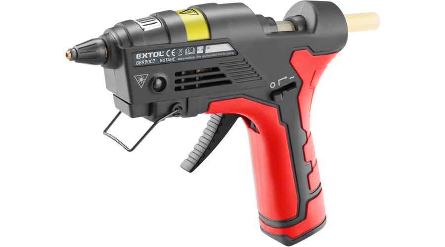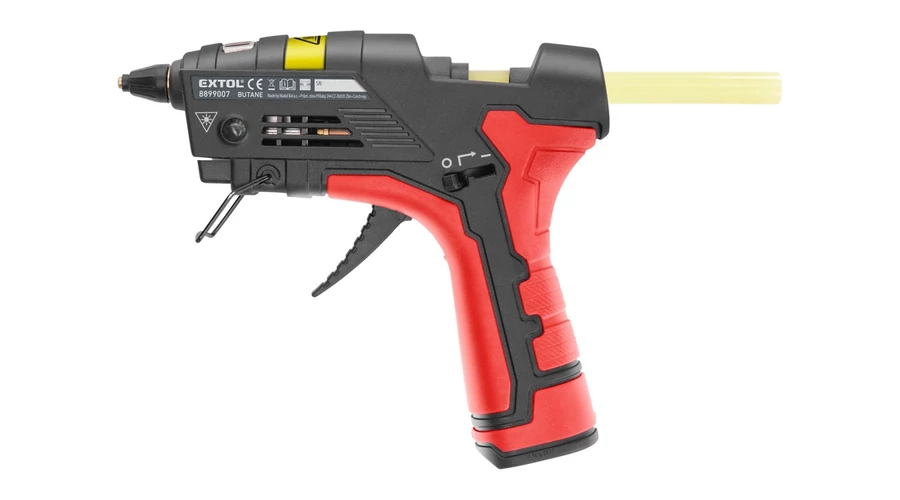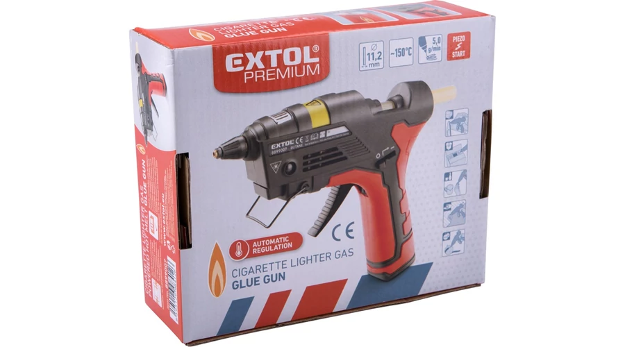 A gázzal működő ragasztópisztolyt úgy tervezték, hogy olvadékragasztót olvasson és alkalmazzon papír, parafa, fa, bőr, szövet, műanyag, kerámia stb. gyors ragasztásához. A ragasztópisztoly nagyon gazdaságosan kialakított fűtőelemmel rendelkezik, amely az elektromos ragasztópisztolyokhoz hasonlóan működik. Amikor a pisztoly üzemi hőmérsékletre melegszik, a fő láng kialszik, és csak a kis gyújtóláng marad égve. Amint a hőmérséklet egy bizonyos érték alá csökken, a főláng automatikusan újra meggyullad és a pisztolyt üzemi hőmérsékletre melegíti. A pisztoly üzemanyagként standard öngyújtógázt használ, amely dohányboltokban könnyen beszerezhető. A pisztoly harmadik generációs töltőszeleppel van felszerelve, amely biztosítja a könnyű, felesleges veszteségek nélküli töltést. A tápkábel hiánya növeli a használat kényelmét és a mozgásszabadságot.