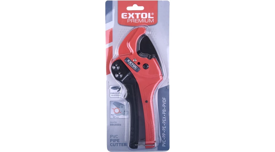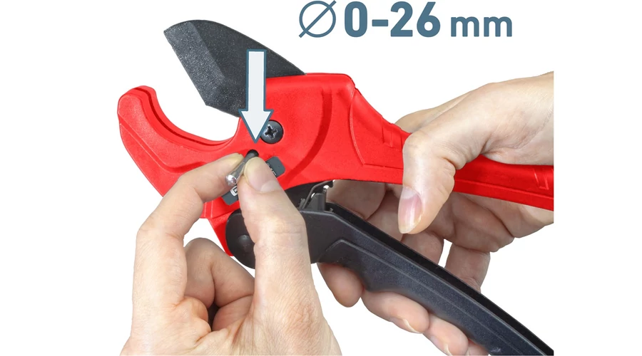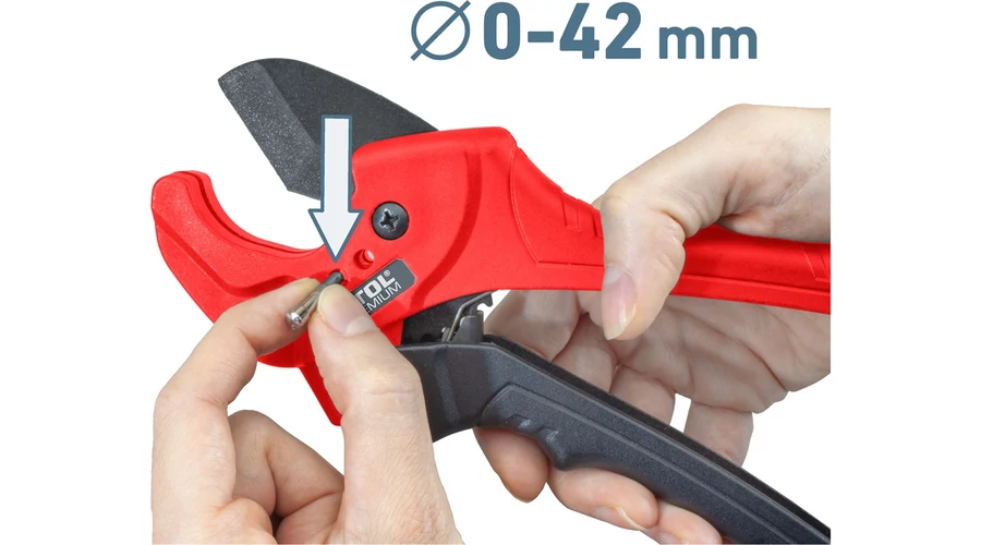 A penge nyílása kétféle átmérőhöz választható - kisebb csőátmérővel 26 mm-ig és teljes vágási tartományban 42 mm-ig terjedő csőátmérővel, PVC, PPR, PP, PE, PEX, PB, PVDF stb. műanyag csövekhez.