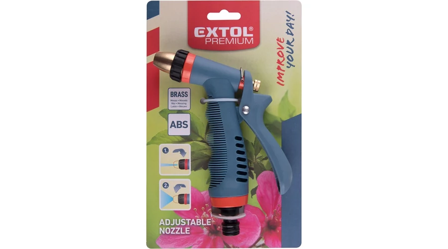 Extol Premium pisztolyos szórófej, locsoló, fém + műanyag, kuplung csatlakozós; állítható sugárcsöves (8876450)