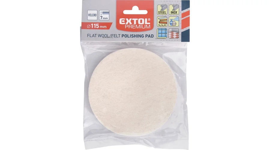 Extol Premium polírkorong, fehér, báránybőr (gyapjú); 115 mm, 7 mm vastag, tépőzáras (8803596)