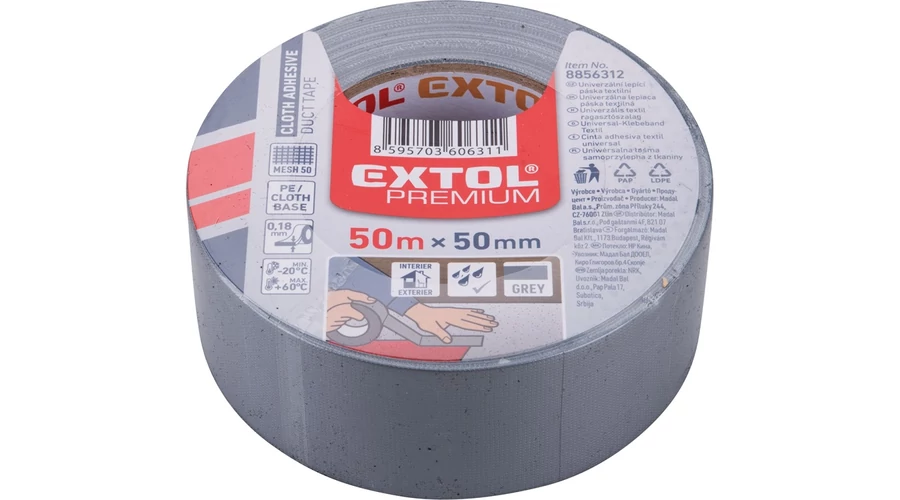 Extol Premium ragasztószalag textiles, szürke, 50mm×50m (hobby szalag / duckt tape) (8856312)
