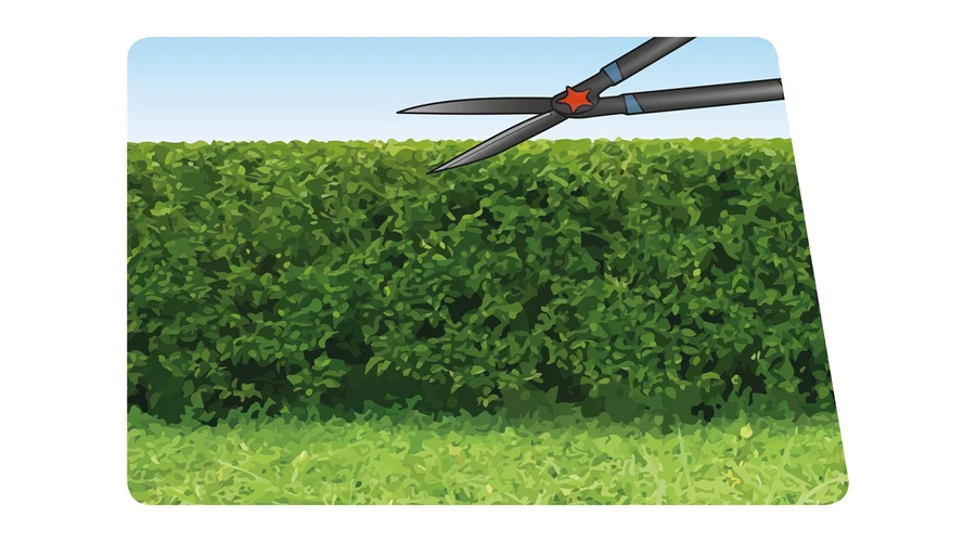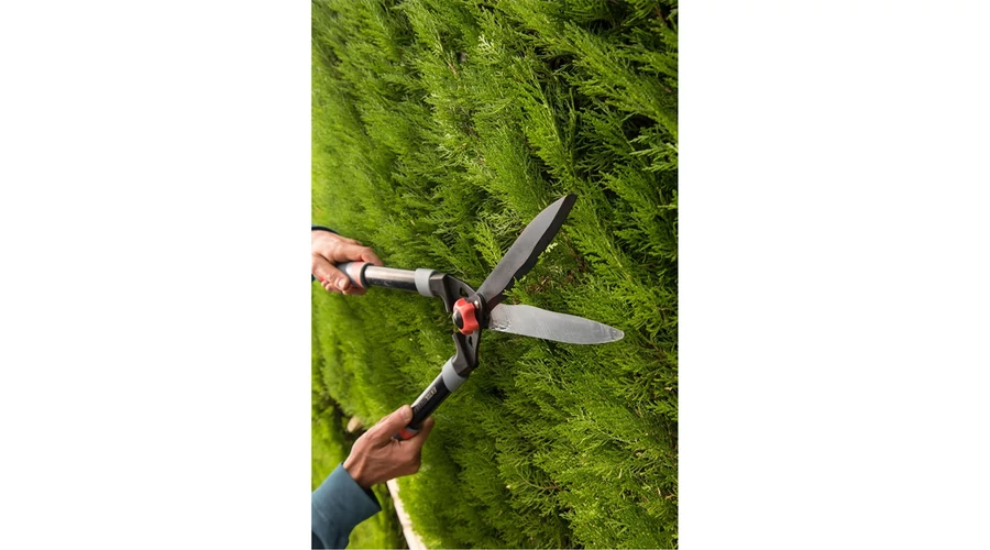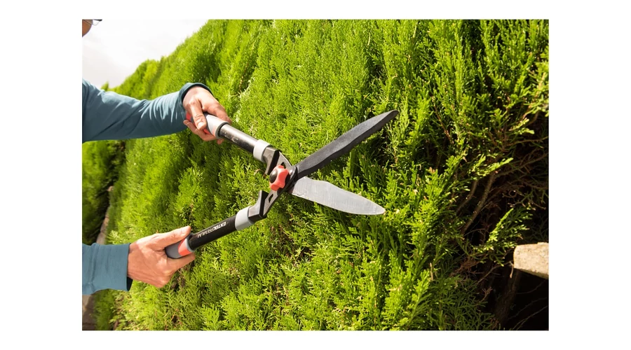 A sövényvágó ellipszis profilú acél nyéllel és gumirozott (puha TPR) műanyag fogantyúval (kemény PP) lett gyártva. 205 mm hullámos, tapadásmentes, teflon bevonattal ellátott vágórésszel, edzett 65MN acélból készült, Teljes hossza: 630 mm.