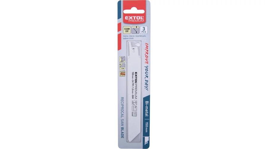 3 db (BIM, mart fogak, 150×22×1,6mm - 24TpI ), vágható anyagok: felhasználás: tiszta egyenes vágások vékonyabb fémlemezeken 3 mm vastagságig, fémprofilokon és csöveken 80 mm vastagságig