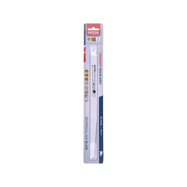 EXTOL PREMIUM szablyafűrészlap klt., 3db, Bosch befogás, 300mm, 6T, Bimetal, fa, műanyag, fém anyagokhoz, gyors- és durva vágás (8806200)