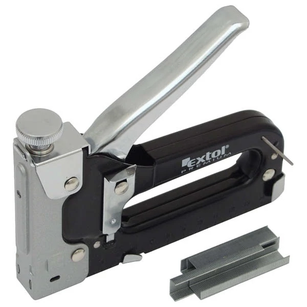 EXTOL PREMIUM tűzőgép 11,3mm×4-14mm, TÜV/GS; feketére festett szénacél ház, hátsó töltés, biztonsági zár (8851100)