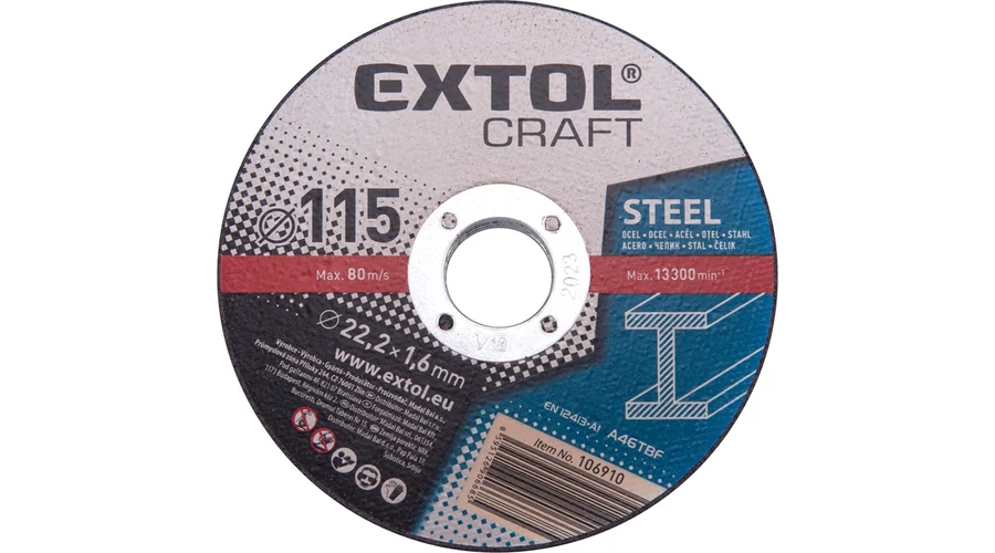 EXTOL vágókorong fémhez; 115×1,6×22,2mm, max. 13.300 ford/perc, (darabáras, de csak ötösével rendelhető) (106910)